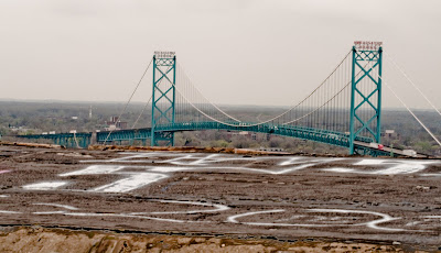 Shot with my 200 mm zoom lens, you would think the Ambassador Bridge came right up to the base of the building. On the other side, there is Canada. To our South ( Detroit is North of Canada….fun trivia factoid)