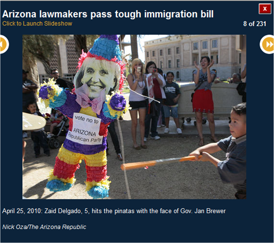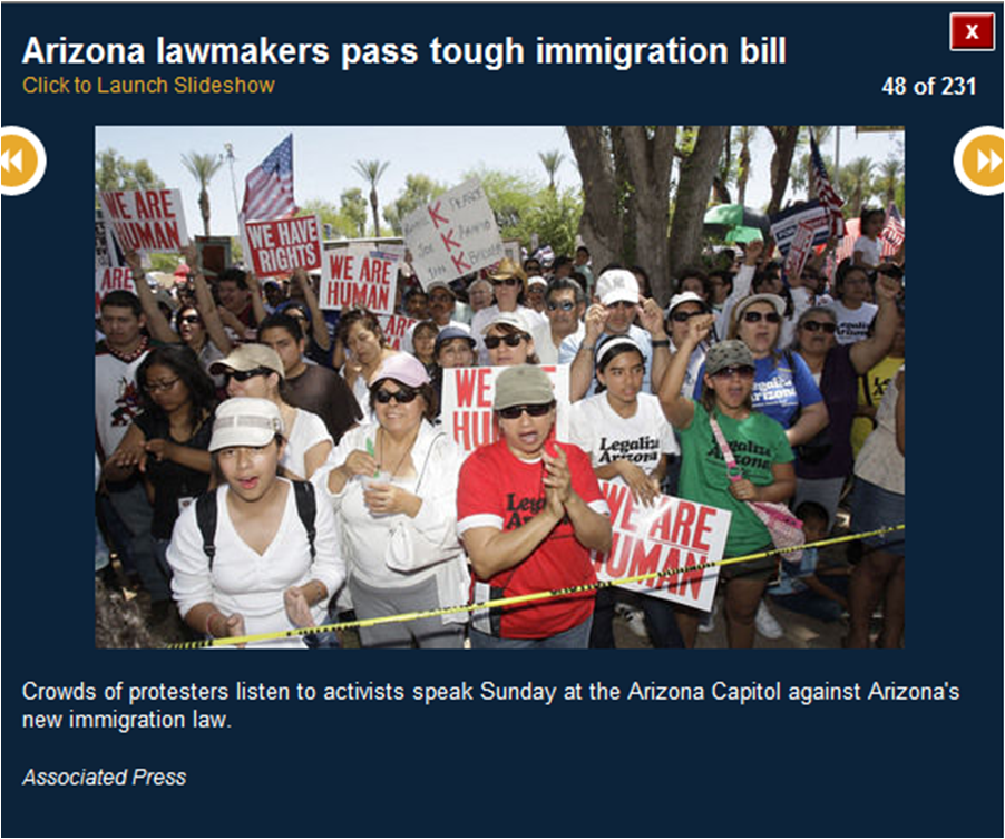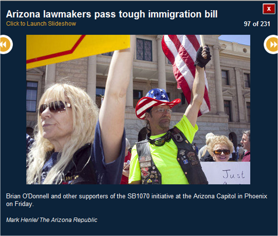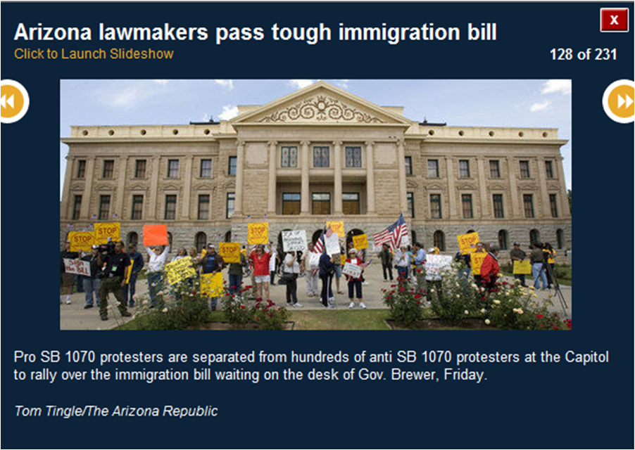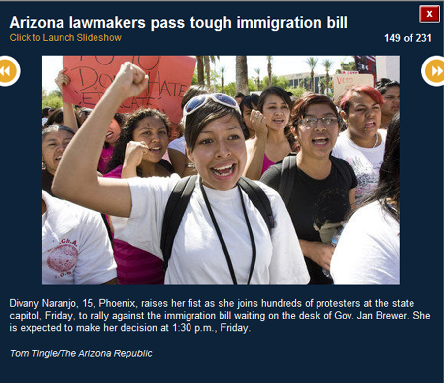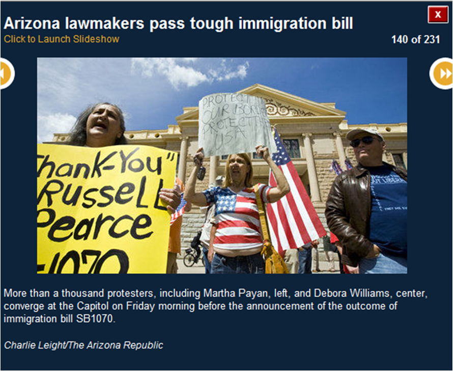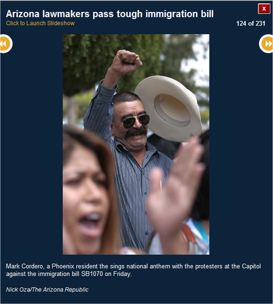 The pictures included here are all downloaded from the azcentral.com website. I use them to prove that many of the activists were bused in from Los Angeles. I show you the masks (think who else wears masks) and the raised fists (remember who did that?) and the hateful signs. I also show you pictures of the crowds (hundreds, not thousands).