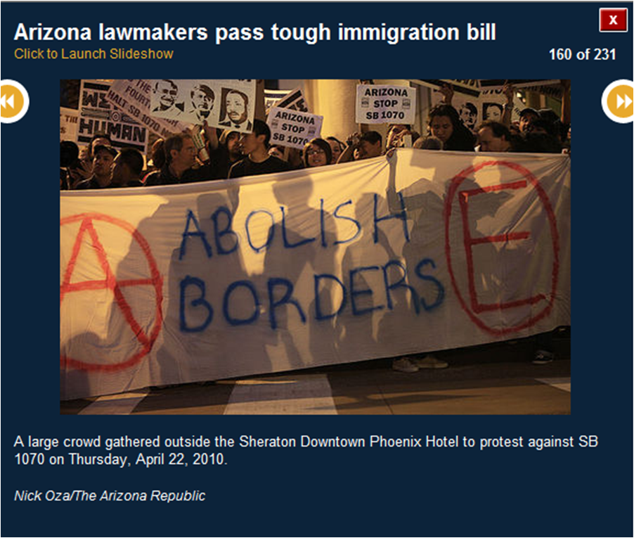 The pictures included here are all downloaded from the azcentral.com website. I use them to prove that many of the activists were bused in from Los Angeles. I show you the masks (think who else wears masks) and the raised fists (remember who did that?) and the hateful signs. I also show you pictures of the crowds (hundreds, not thousands).