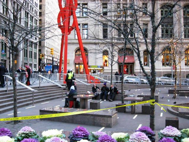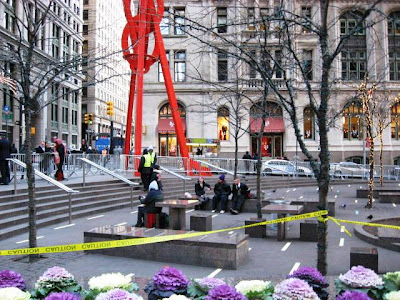 I stopped by Zucotti Square yesterday morning and was happily surprised to see the place completely cleaned out. Other than the continued beefed-up police presence and barricades that fully encircle the park to keep the Marxist Occupiers from returning, it looked pretty normal.